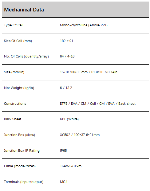 Irradiance 1000W/m², Module temperature 25°C, AM=1.5