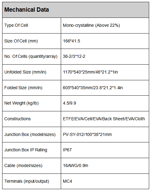 Irradiance 1000W/m², Module temperature25°C AM=1.5